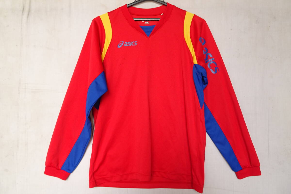- asics/アシックス/XS037N/長袖プルオーバー/Vネック/速乾性素材/袖ぐり黄切替/袖脇袖下青切替/袖口リブ/スポーツ/赤/レッド/Mサイズ(9/13R)