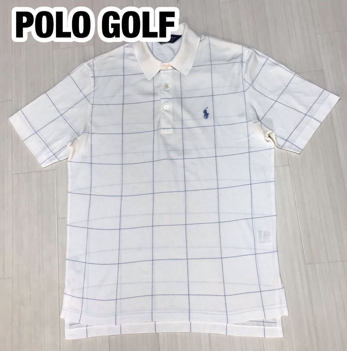 - POLO GOLF RALPH LAUREN ポロ ジーンズ ラルフローレン 半袖ポロシャツ S 孔子柄 ホワイト×ブルー 刺繍ポニー