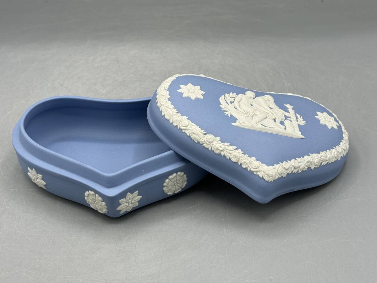 - 英国 ウェッジウッド ジャスパーウェア ブルー ハート 小物入れ 蓋付 ジャスパー (779)