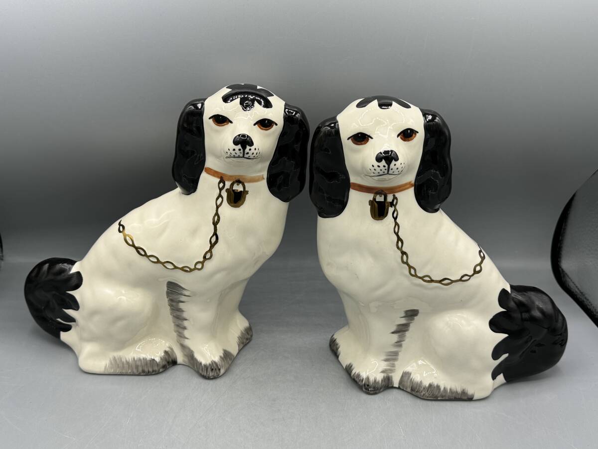 - 英国 スタッフォードシャー ドッグ 白黒 犬 ペア 陶器 ビンテージ マントルピース スコットランド