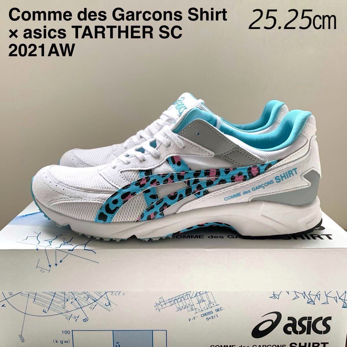 - 新品 コムデギャルソンシャツ アシックス コラボ TARTHER レオパード柄 スニーカー 25.25㎝ US7 Comme des Garcons SHIRTS ブルー 送料無料