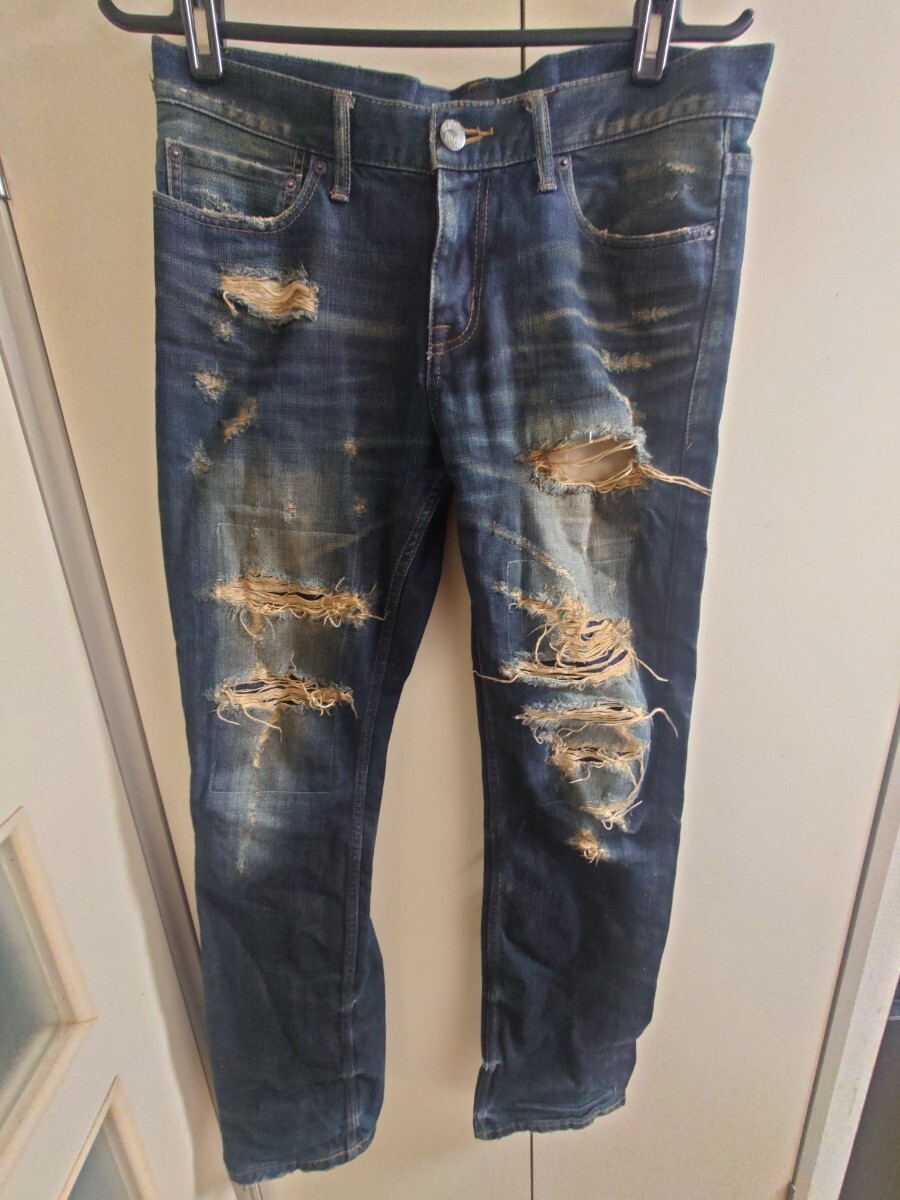 - 即決 希少 当時物 送料無料 ジャックロ―ズ ダメージジ―ンズ 濃い青 糸 サイズ33