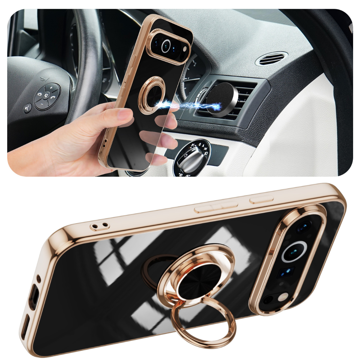 - Pixel9/9Pro スマホケース リング付き ブラック