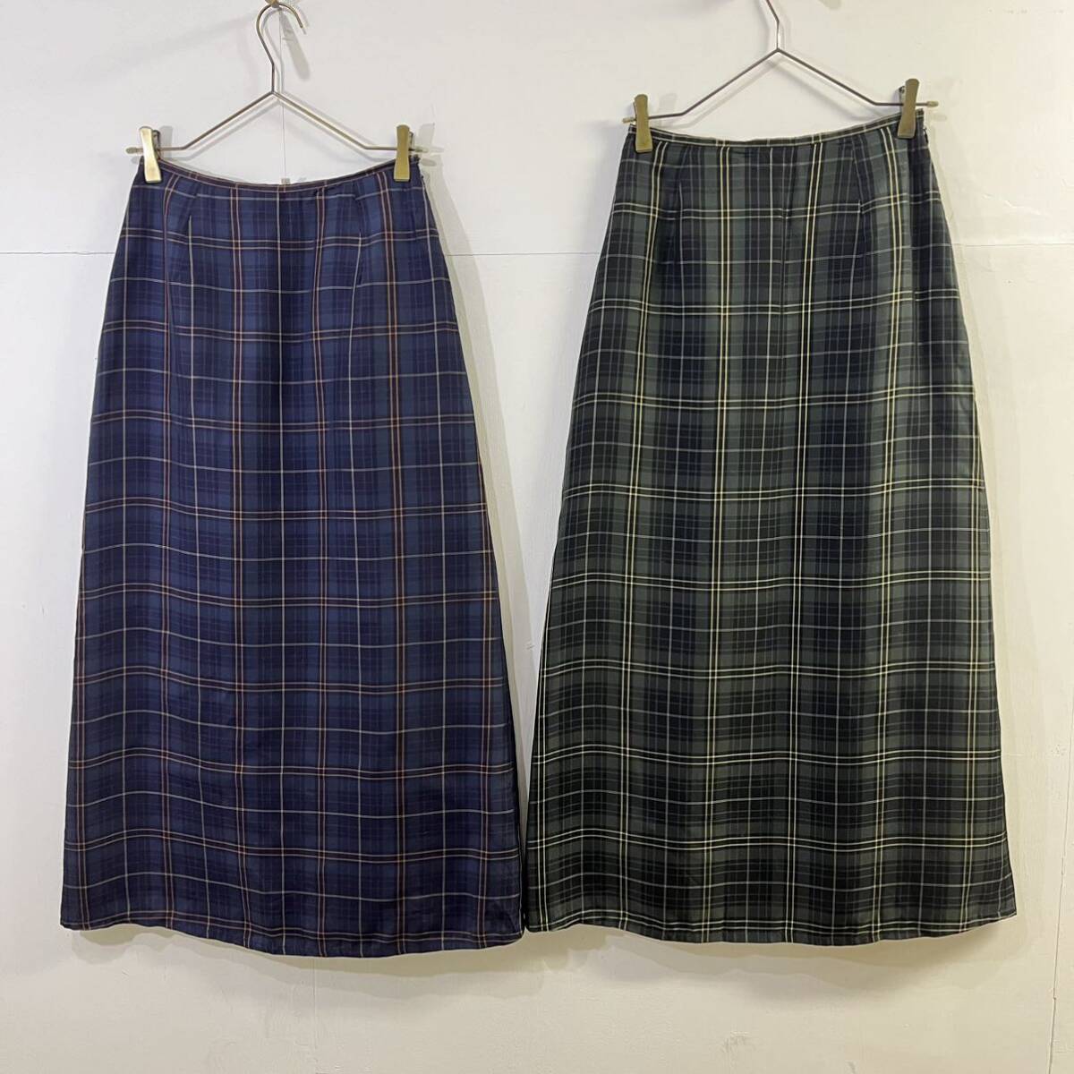 - INED 2点セット ロングスカート チェック柄 チェックスカート 総柄スカート キュプラスカート 上質 希少【レターパックプラス郵送可】N