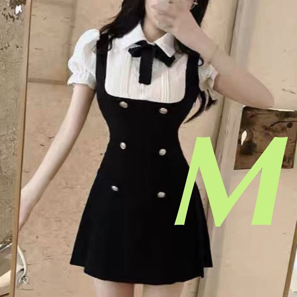 - セットアップ ワンピース ミニスカート ミニワンピース コスプレ スカート リボン 半袖 ブラウス ドレス ミニワンピ トレンド 人気 黒 M
