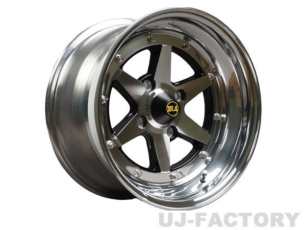 > 【送料無料!】復刻版 リアル 3ピースバージョン ロンシャン XR4 15インチ 8.0J(8J × 15)±0 114.3-4H★2本セット ブラックポリッシュ