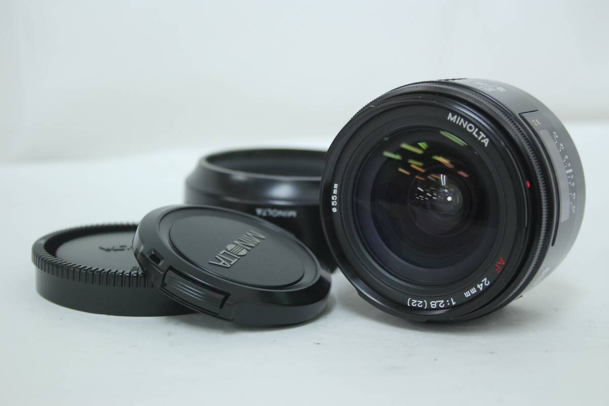 - 【返品保証】 ミノルタ Minolta AF 24mm F2.8 フード 前後キャップ付き レンズ v6815