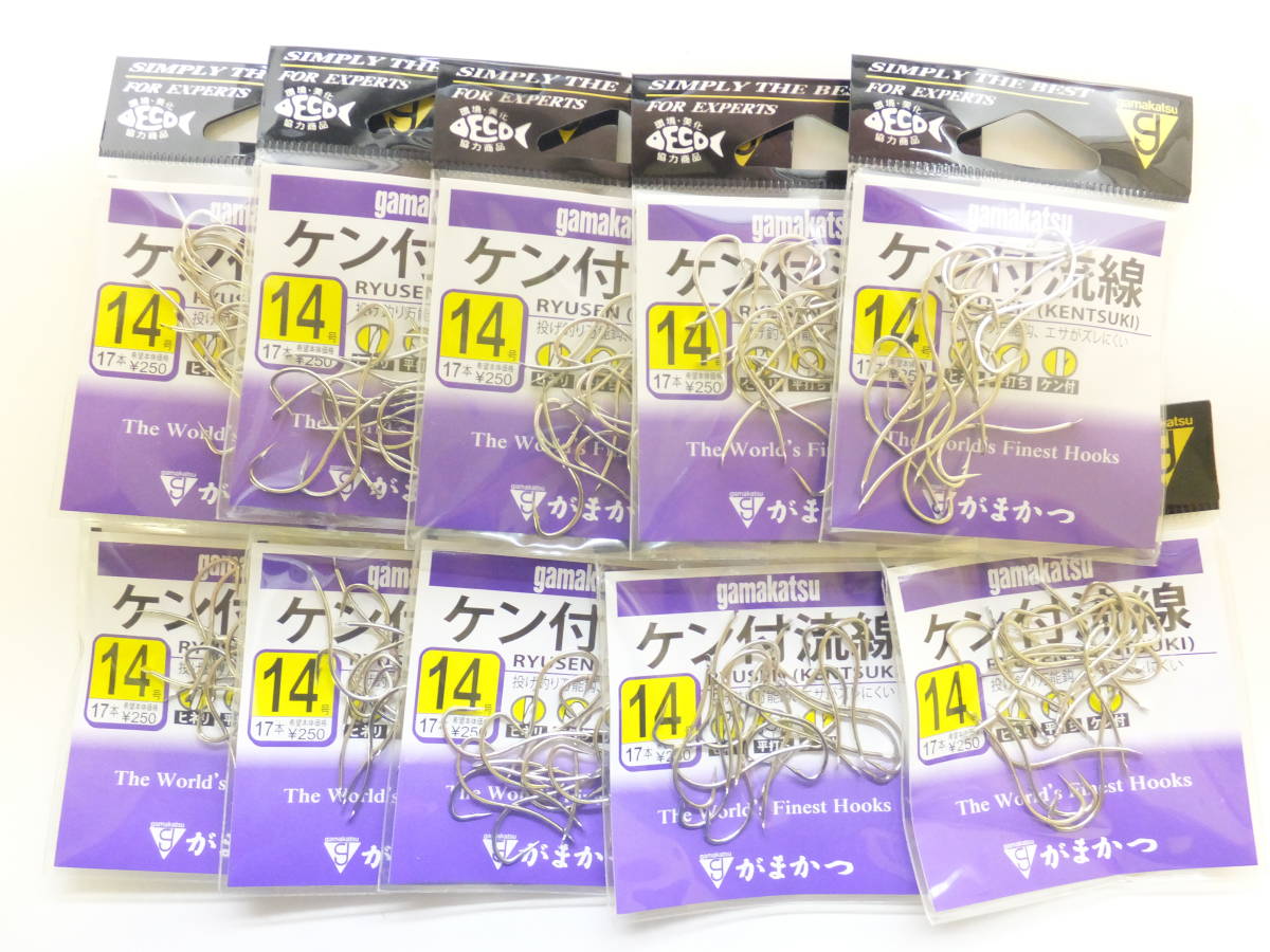 - 処分◆バラ鉤◆がまかつ◆ ケン付流線 (白) 14号 10個セット◆定価¥2,750円(税込)