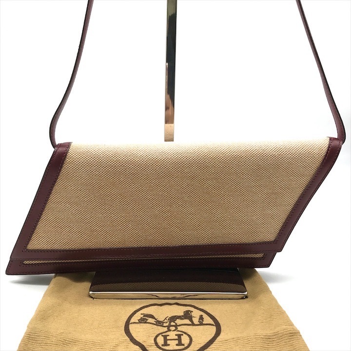 - 良品 HERMES エルメス トワルアッシュ カーフスキン 2WAY ヴィンテージ クラッチ ショルダー バッグ ボルドー a3491