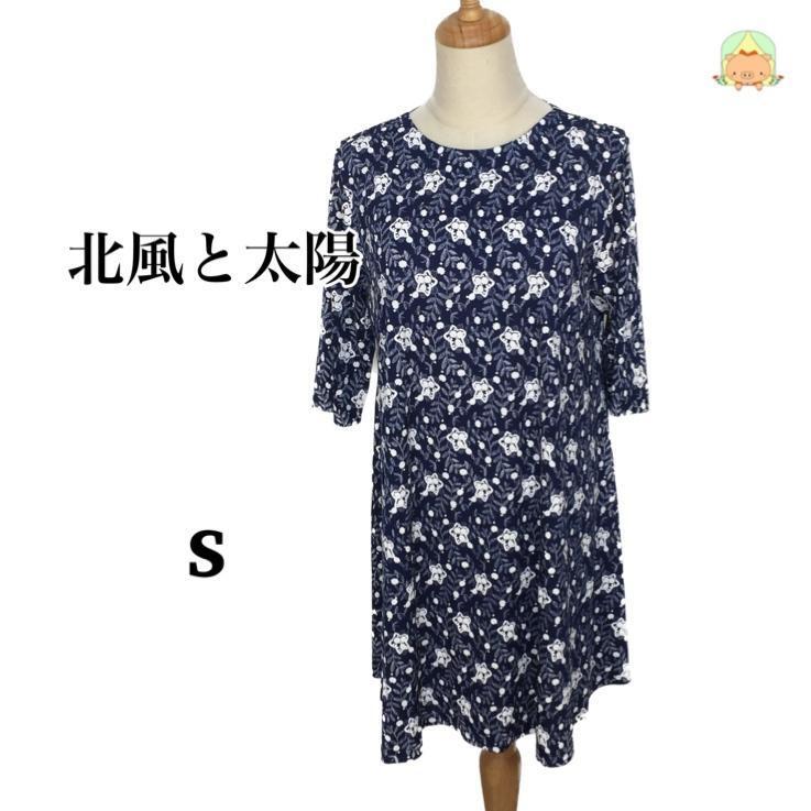 - C0752 北風と太陽 ワンピース 七分袖 花柄 総柄 ショート丈 大人っぽい フェミニン