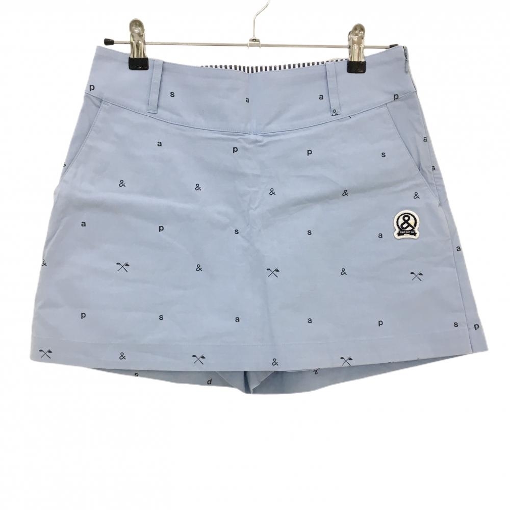 > アンパスィ キュロットスカート ライトブルー×黒 ロゴ総柄 レディース L ゴルフウェア and per se