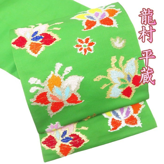 > 【FINAL PRICE】 ★きもの北條★ 龍村平蔵 モール昌花文 存在感と華やぎある装いに 萌黄色 袋帯 A723-18 【中古】