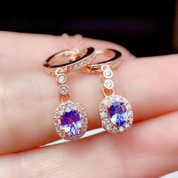 ナチュラルタンザナイトピアス、4mm x 5mm、パーティー用、925シルバー、証明書