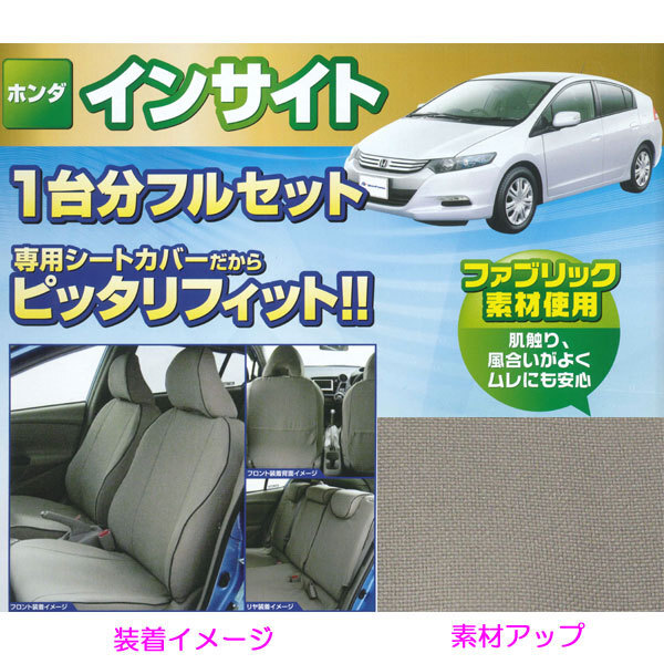 > シートカバー ホンダ インサイト 型式 DAA-ZE2 H21.2-H23.10 専用 プレーン ファブリック 布 素材 車1台分 フルセット グレー GR