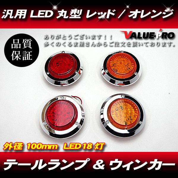 > 汎用 丸型LEDテールランプ 100mm オレンジ+レッド ジムニー トラック トレーラーなど / 18発 ポジション+ブレーキ ウインカー JIMNY