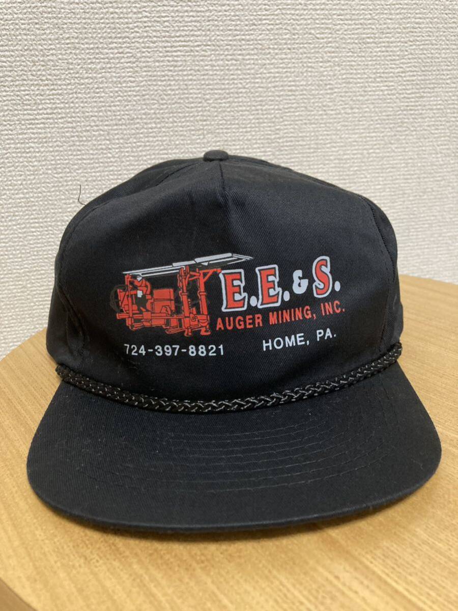 - 80's90's USAヴィンテージ COBRA CAPS トラッカーキャップ CAP ブラック BLK E.E. & S.Auger Mining Inc企業物 Cap 帽子