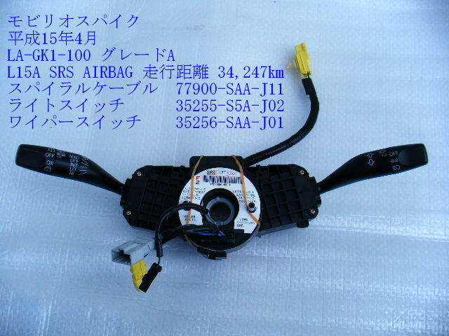 - ◆LA-GK1 モビリオスパイク スパイラルケーブル 77900-SAA-J11 コンビネーションスイッチ 34,247㎞ [13417]