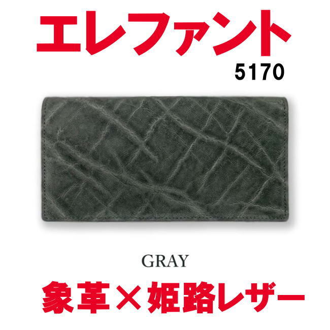 - グレー エレファント 5170 日本製 本物 象革 紳士 メンズ 長財布