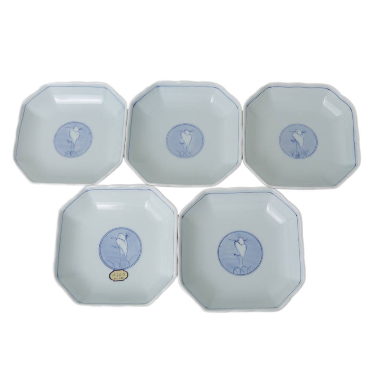 - 有田焼 一誠窯 手書き 鳥絵 小鉢 5客 13×13(cm) NT ABランク