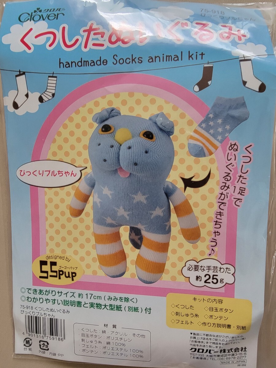 - 【クロバー】くつしたぬいぐるみキット(びっくりブルちゃん)