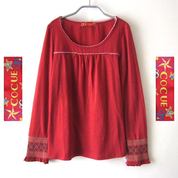 - 美品 COCUE/コキュ★ 袖口に刺繍 長袖カットソー