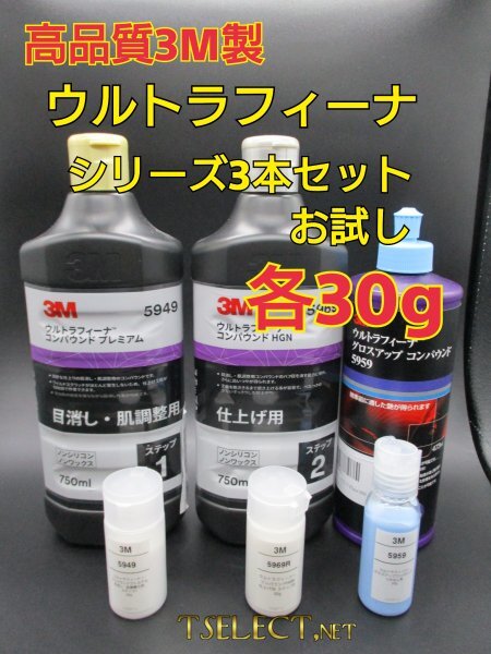 - 3M(スリーエム) コンパウンド ウルトラフィーナプレミアム目消し・仕上げ・艶出し3本SET★お試し30g小分け2 磨き・傷取り・使い切り