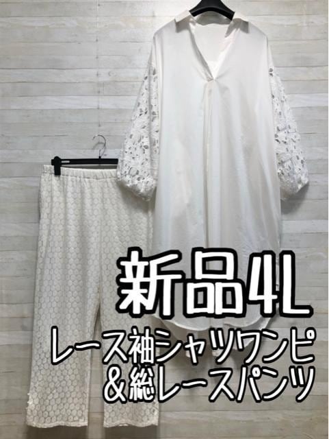 - 新品☆4L♪レースおしゃれ♪ロング丈シャツワンピ&パンツ☆f398