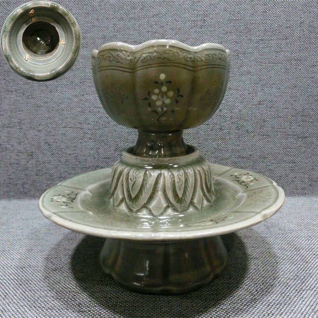 - ▼渡鶴羽▼P338珍品旧蔵 朝鮮 高麗磁 朝鮮古陶磁器 古高麗 李朝時代 高麗青磁盞托