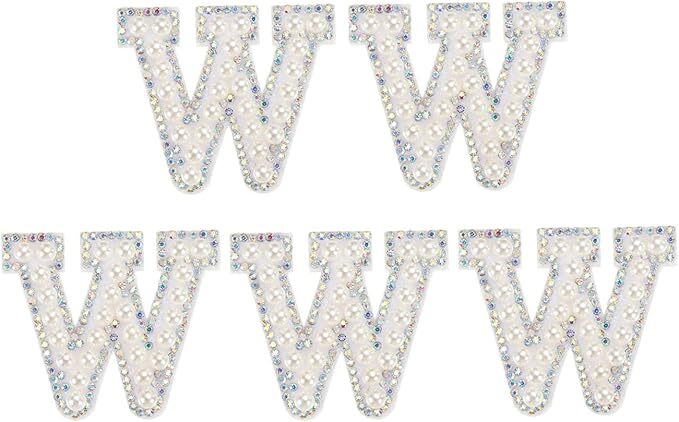- uxcell アイロン接着パッチ 文字W カラーラインストーン シャイニーパール 英語アルファベット 縫製パッチ DIY 洋服修理 帽子 バッグ 靴
