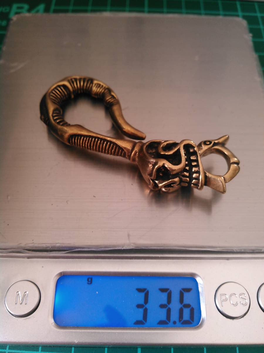 - 送料無料 真鍮製 ドクロのフック1 検) ワレットチェーン キーホルダー 鞄 小物 ドラゴン レザークラフト 手芸 ハンドメイド 頭蓋骨 スカル