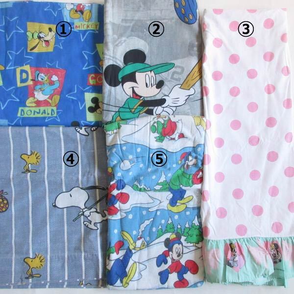 - 古着卸 レア柄 新品 美品有 大判 はぎれ 5枚セット シーツ 布 リメイク生地 まとめ売り ミッキー ディズニー スヌーピー■L/D133-71-0050YV
