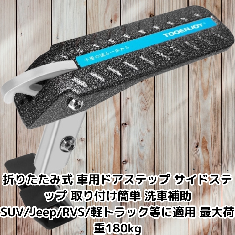 - 折りたたみ式 車用ドアステップ サイドステップ 取り付け簡単 洗車補助 SUV/Jeep/RVS/軽トラック等に適用 最大荷重180kg シルバーブラック
