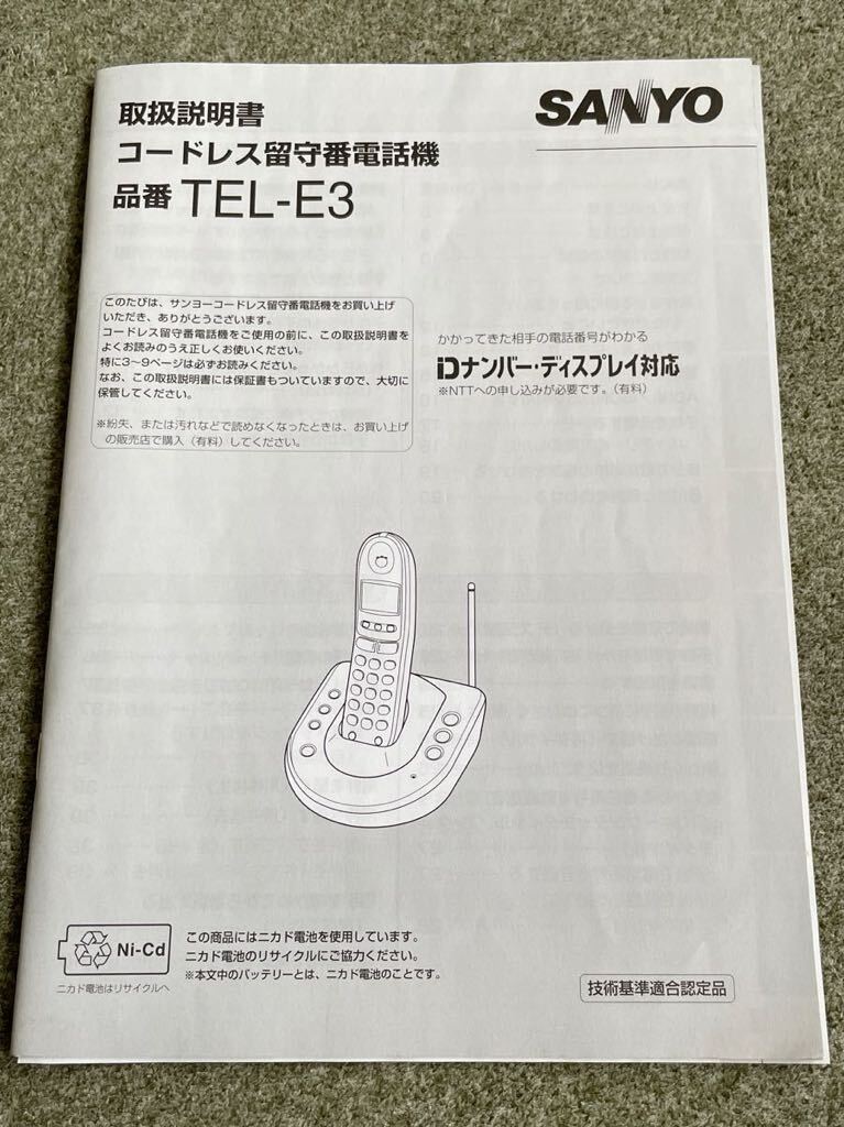- 取扱説明書のみ コードレス留守番電話機 TEL-E3 SANYO 三洋電機 取説 取り扱い説明書 即決 送料込
