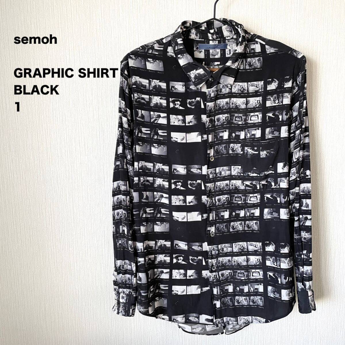 > 【semoh】セモー グラフィックシャツ 長袖 植村幸コラボ 総柄 モード ロック フォトプリント 匿名配送 メンズ 黒 ブラック 1
