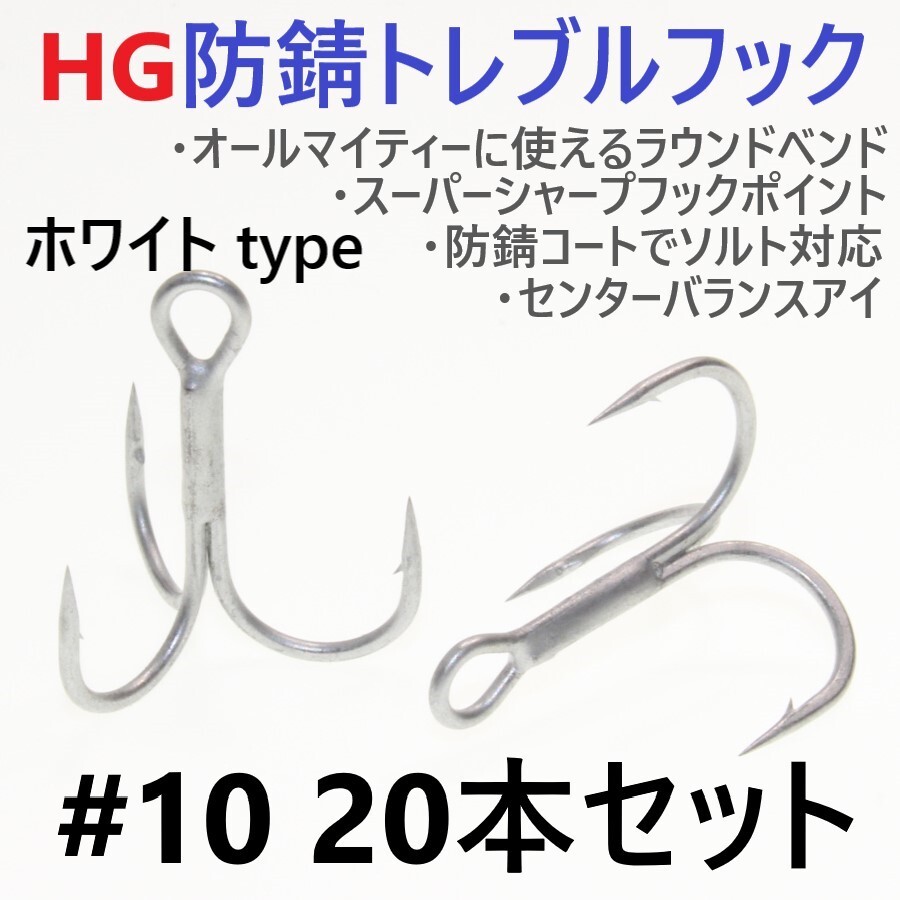 > 【送料150円】ハイグレード防錆トレブルフック ホワイト#10 20本セット 高品質ルアーフック がまかつトレブル13好きに