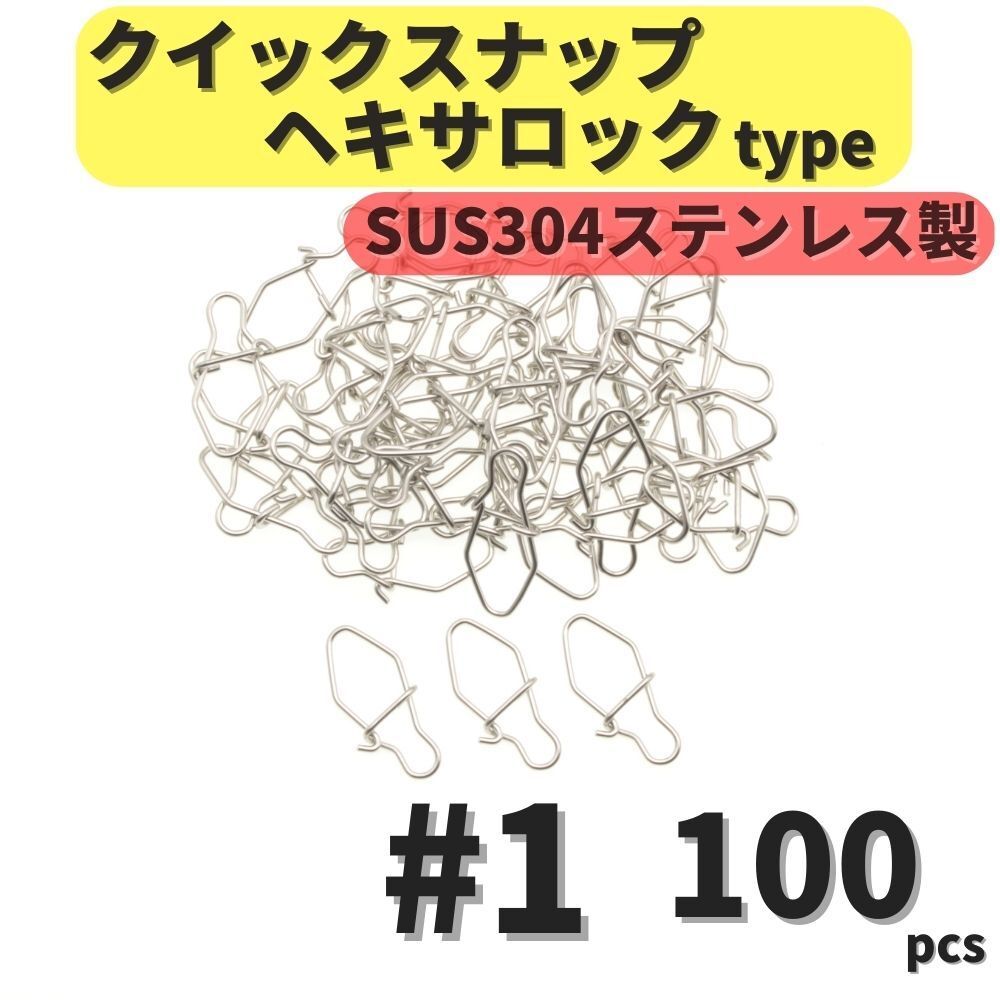 > 【送料150円】SUS304 ステンレス製 クイックスナップ ヘキサロックタイプ #1 100個セット ルアー用 防錆 強力 スナップ