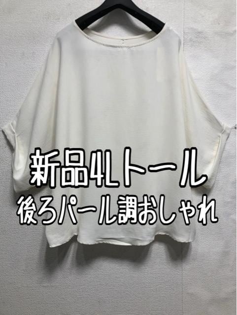 - 新品☆4Lトール♪白系♪ドルマンブラウス♪後ろパール調☆b485