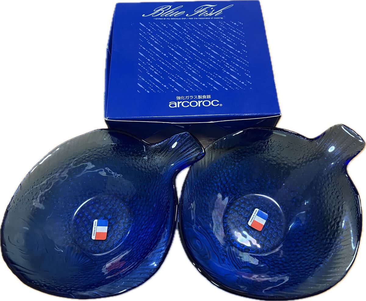 - [arcoroc] フランス製 Blue Fish 強化ガラス小鉢 2個セット