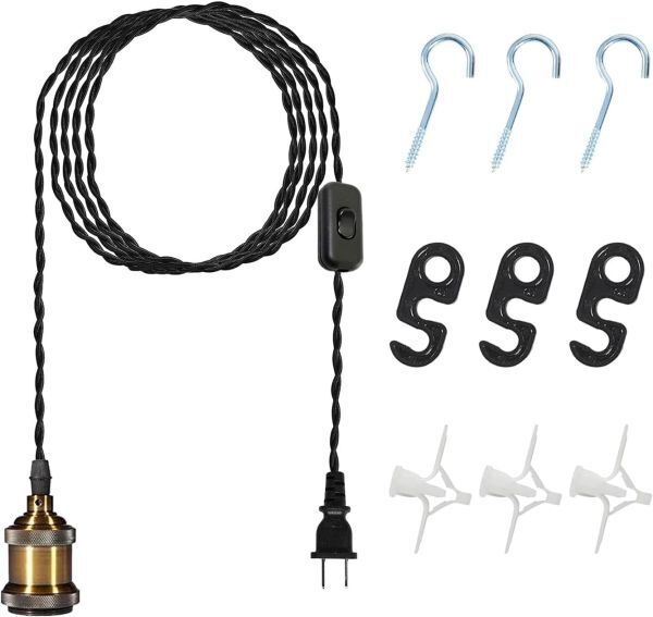 - OTD コンセント式 ペンダントライト LED対応 口金E26 真鍮電球ソケット ON/OFFスイッチ 真鍮メッキ【コード長さ450cm】電球別売り