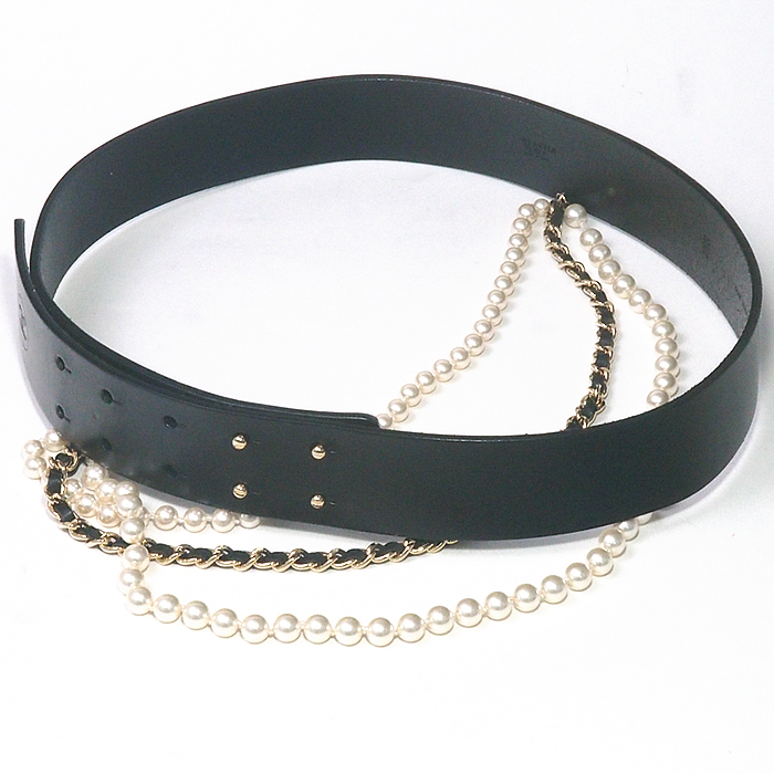詳細:シャネル CHANEL チェーン ココマーク フェイクパール ベルト 02P サイズ:表記 80/32、全長 約96cm、幅 約4.0cm カラー:ブラック 金具カラー:ゴールド 素材:革 付属品:無し