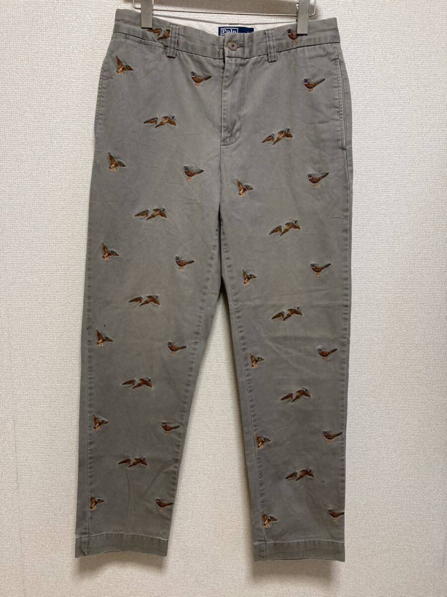 - 90's USAヴィンテージ Polo by Ralph Lauren ポロ ラルフローレン 刺繍パンツ 総柄 ポロチノ ワークパンツ 32Lグレー 雉柄 鴨90年代