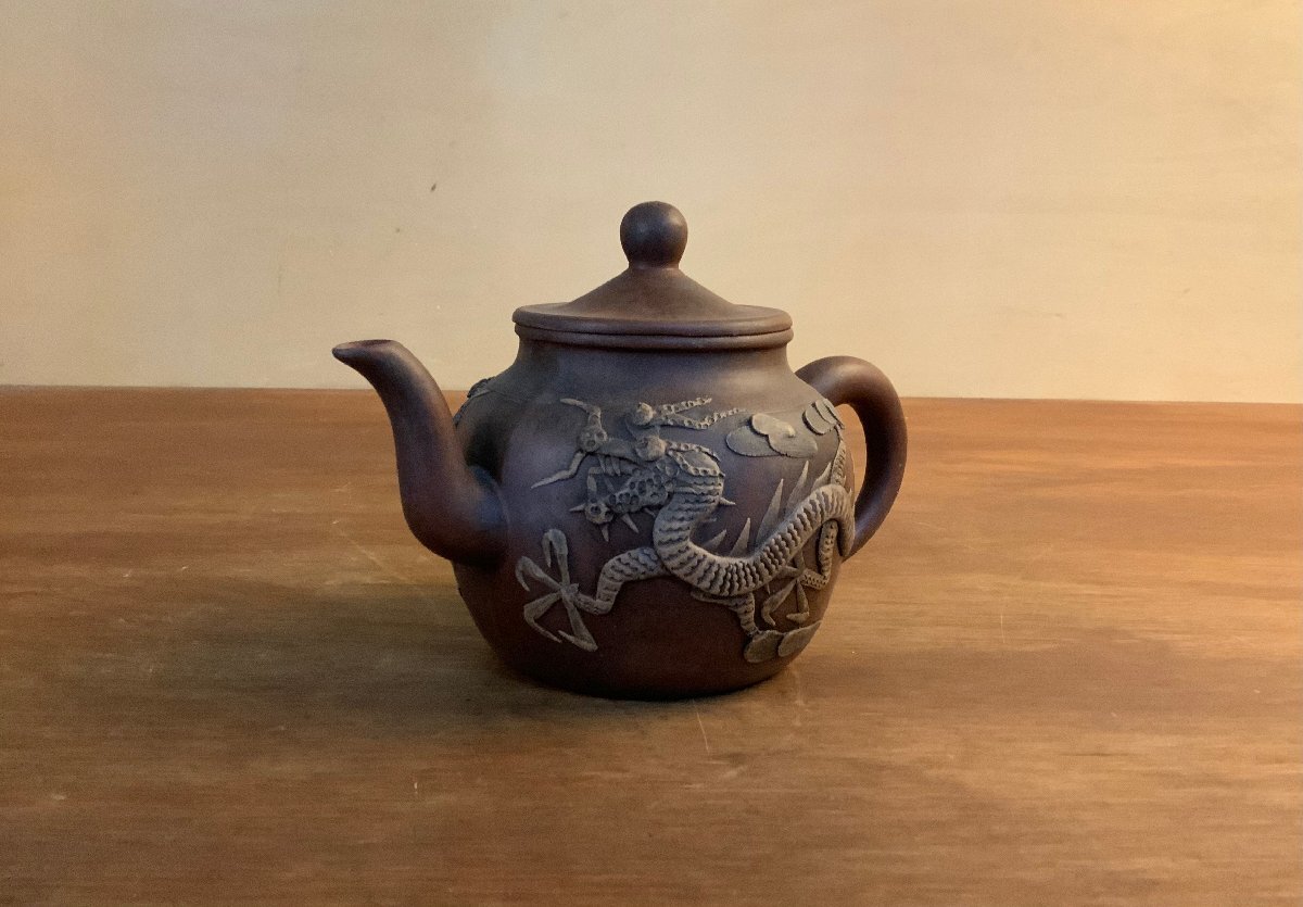 - HH-9576 ■送料込■ 時大彬製 中国 急須 朱泥 龍 彫刻 陶器 茶道具 水注 骨董品 アンティーク 450g /くYUら
