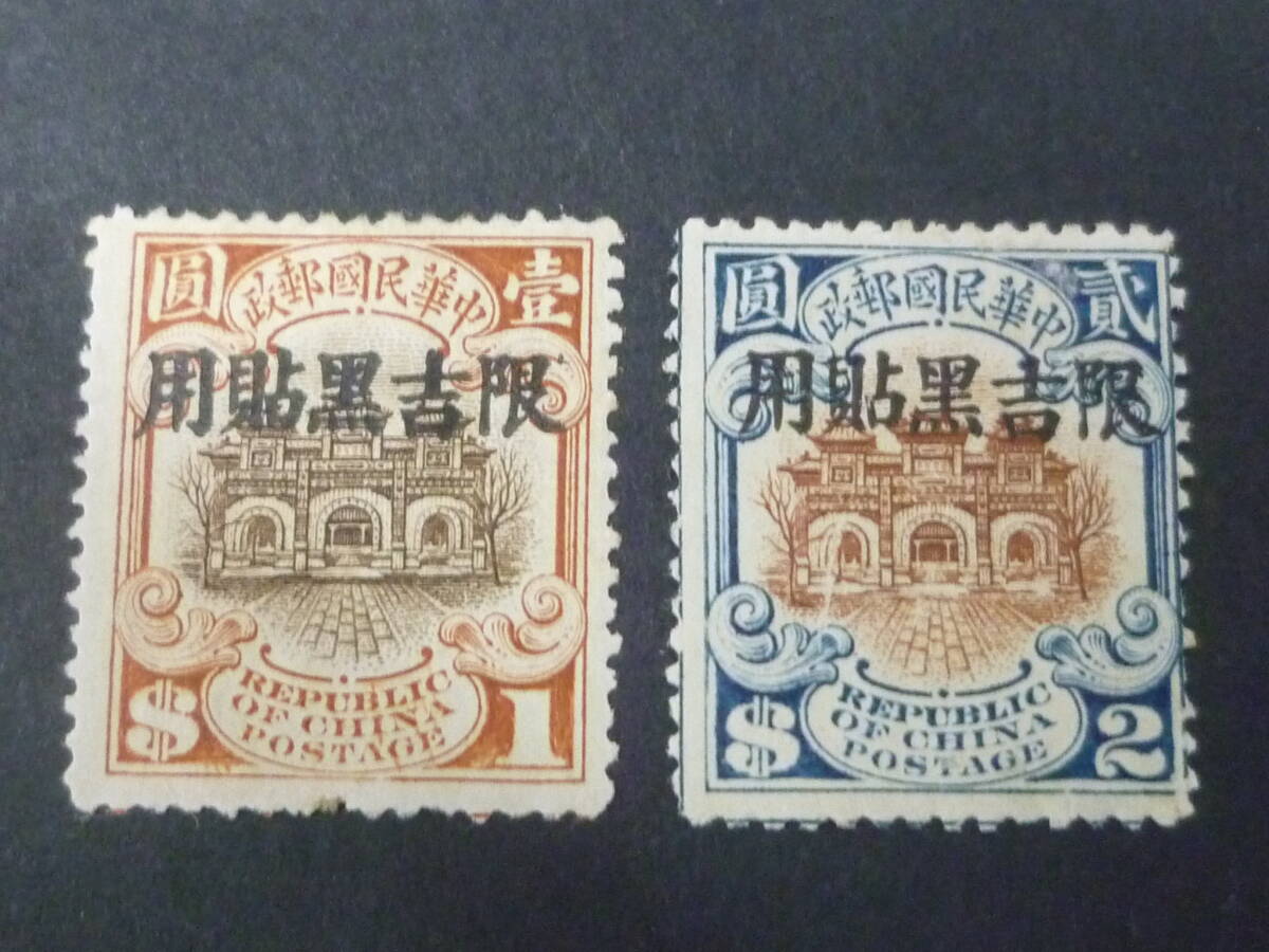 - 25 M №69 旧中国切手 吉黒省 1927年 JPS#NE18-19 北京新版帆船 $1・$2 計2種 未使用OH・VF ※説明欄必読