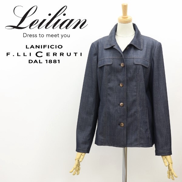 > ◆Leilian レリアン × ラニフィチオチェルッティ社 デニム風 長袖 ジャケット ネイビー 紺 9