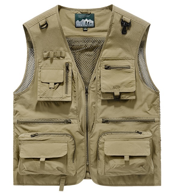- 新販売 メンズ ワークベスト カメラマンベスト 撮影用 アウター カジュアル 多機能 お釣り登山服 カーキ/L