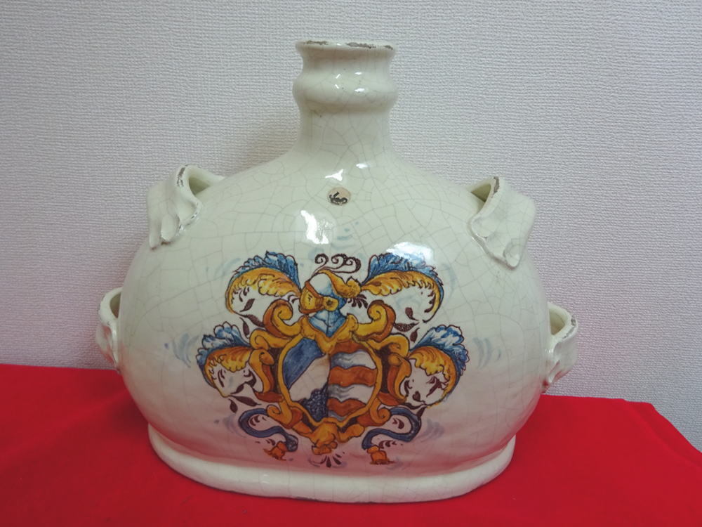 - ■□イタリア グッビオ 陶器 花瓶 水挿し 入れ物 持ち手つき 手描き インテリア □■