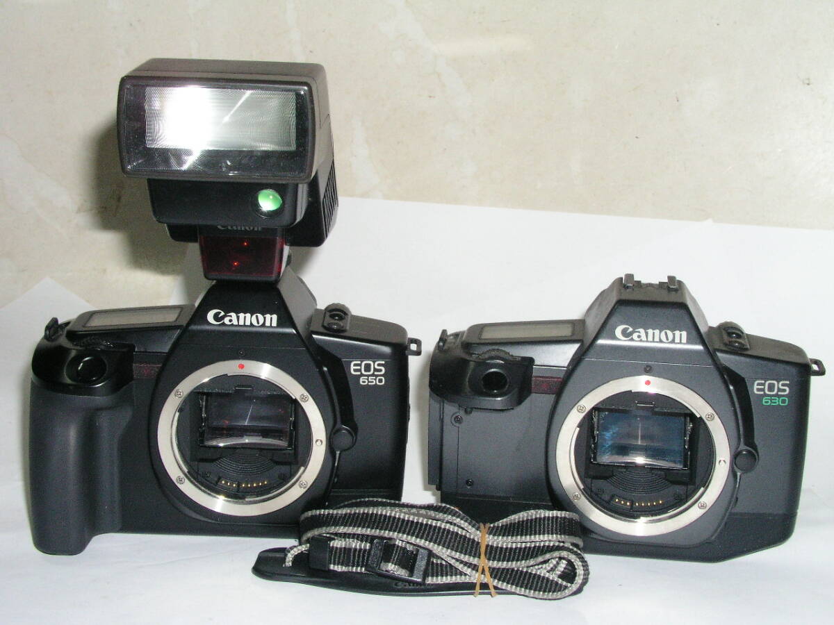 > 6916★★ Canon EOS 650(初代イオス) + EOS 630(約5コマ/秒モーター搭載) ボディ2台 + SPEEDLITE 300EZ ●4247