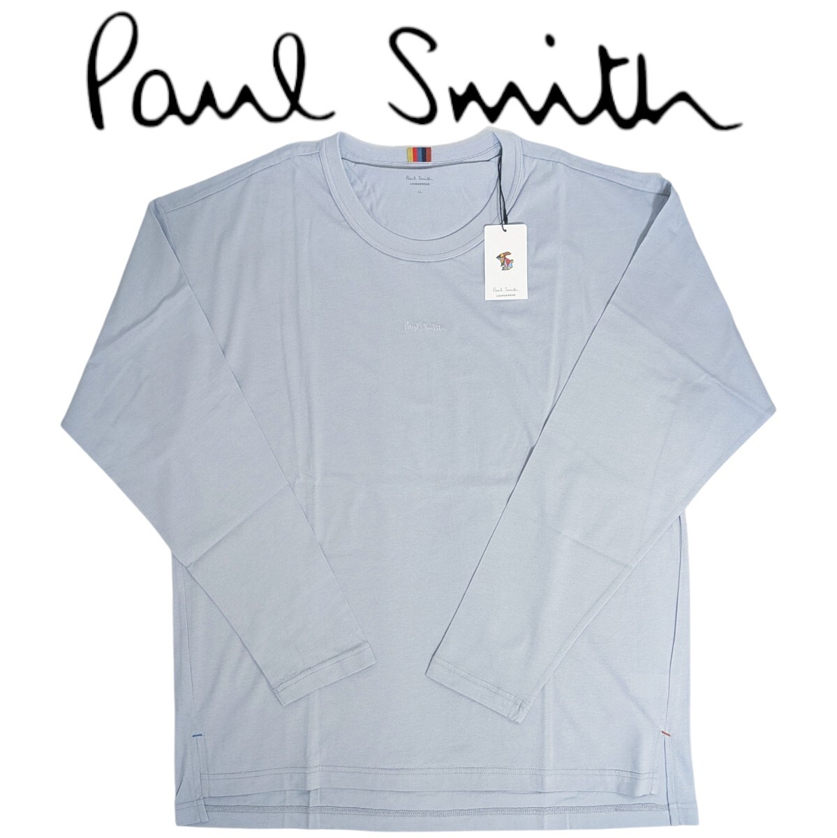 > 新品 ポールスミス Paul Smith 長袖 Tシャツ M カットソー 薄手アーティストストライプ ラウンジウェア ブランドロゴ サックス 秋 冬