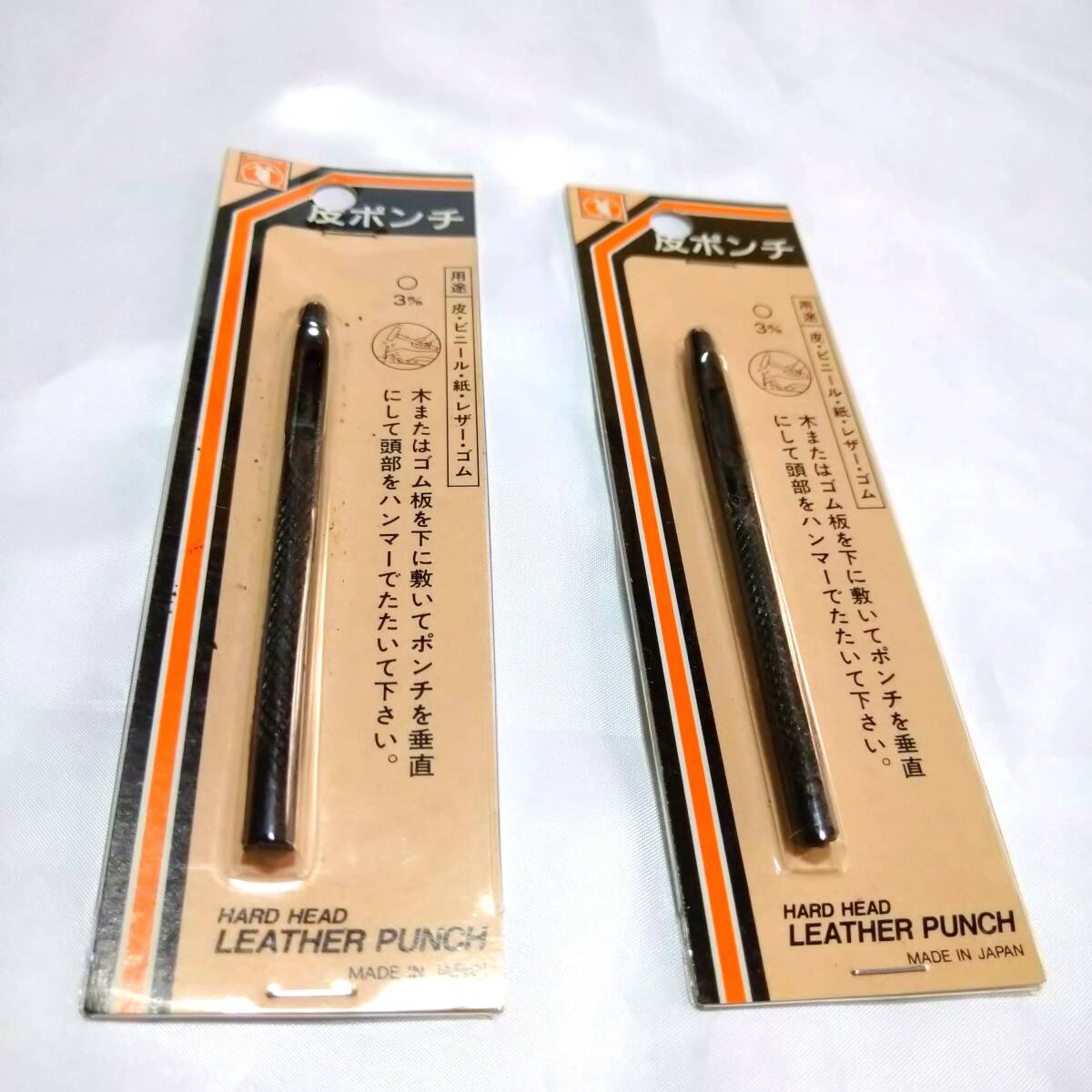 - 未使用、保管品 日本製 皮ポンチ (用途:皮 ビニール 紙 レザー ゴム) 穴直径3㎜ 全長約90㎜ 2本セット