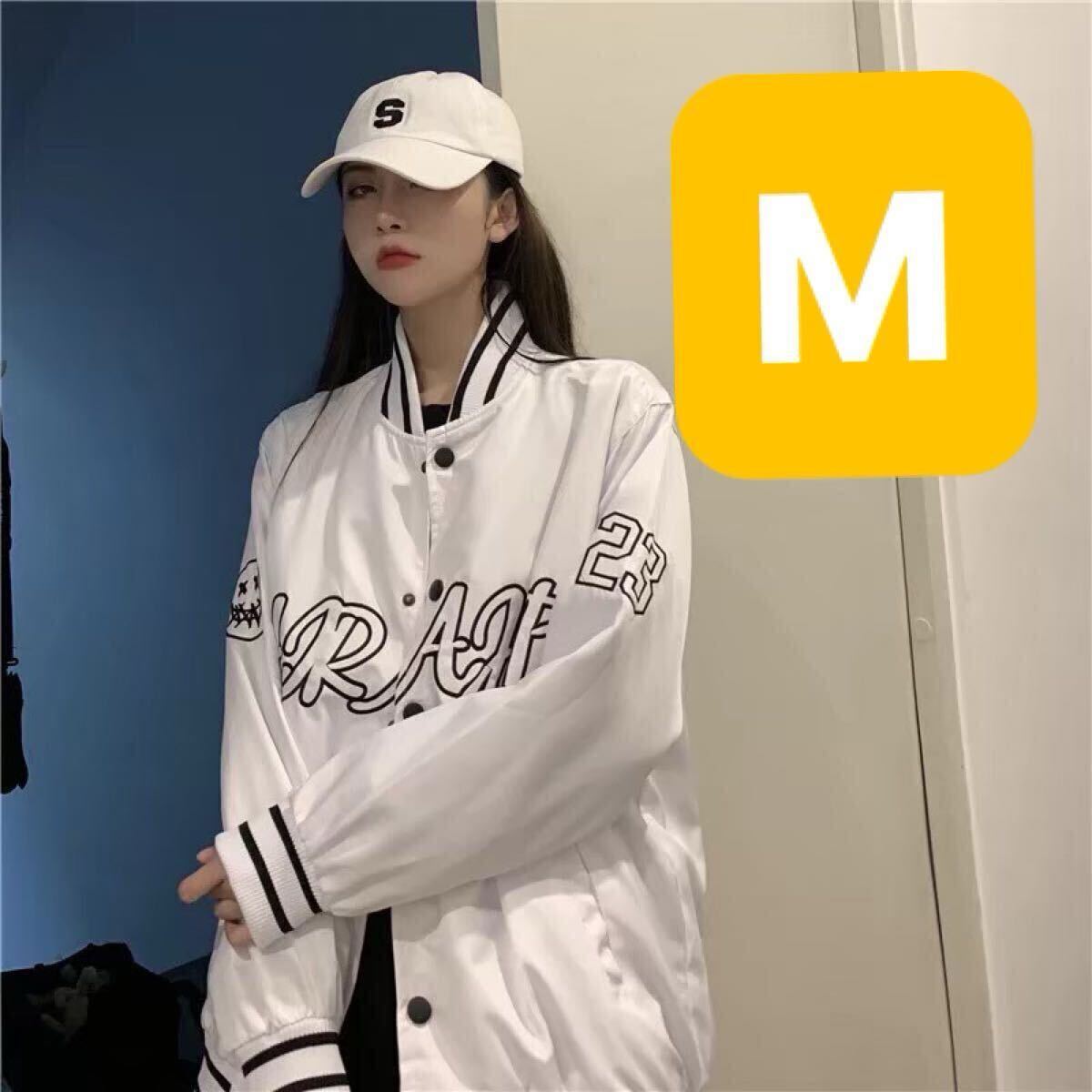 - ブルゾン ジャケット アウター ナイロンジャケット スタジャン トレンド ストリート ユニセックス メンズ レディース ホワイト 白 M